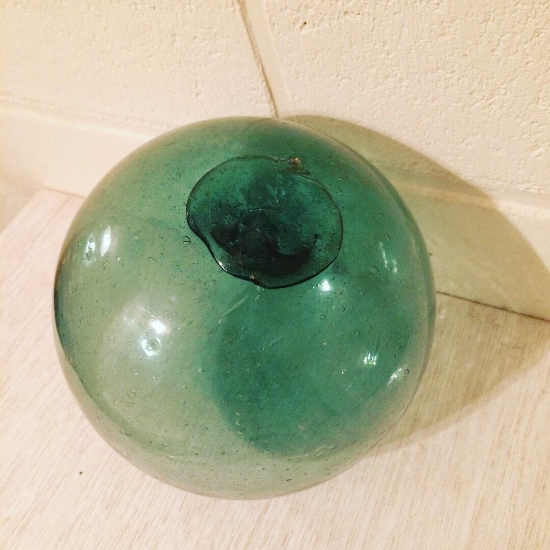 気泡がいっぱいでサイズ感がレアで、ちょっといびつで憎めない感じのガラスの浮き玉です。