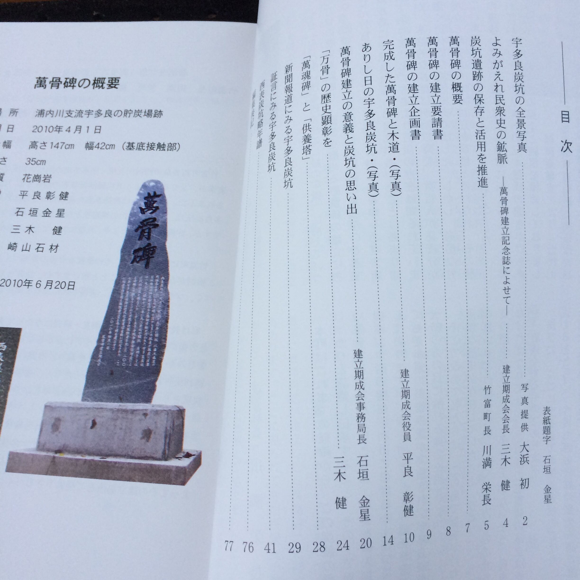 西表島・宇多良炭坑 萬骨碑 建立記念誌